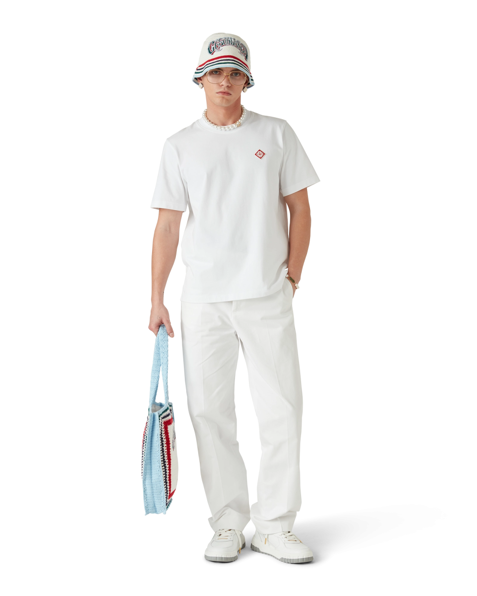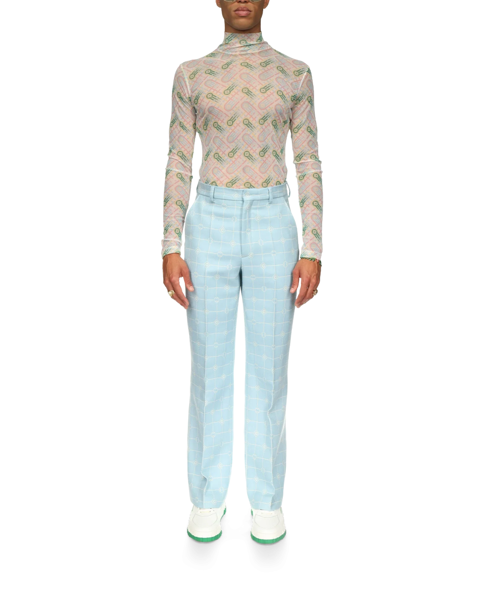 Embroidered Motif Wool Tailored Trousers