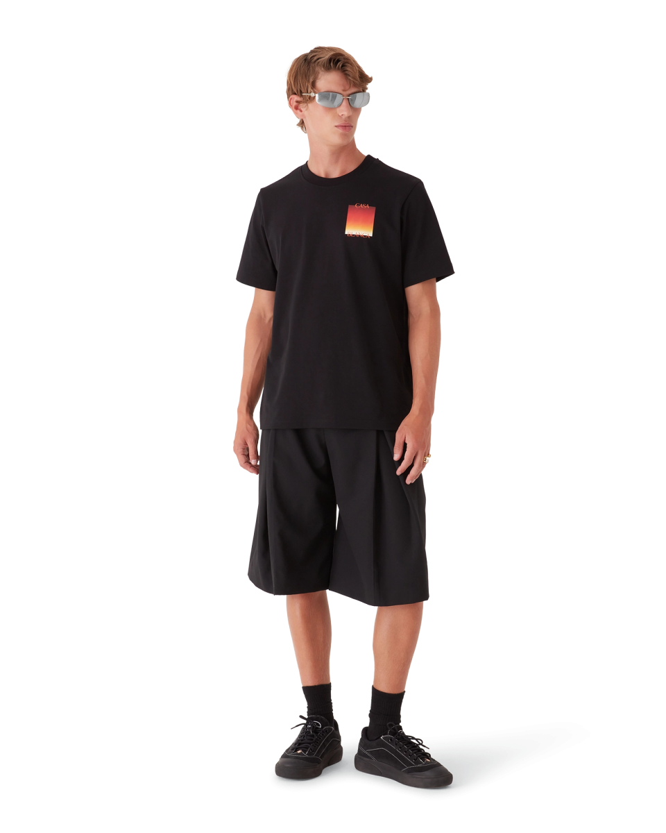 The Afro Cubism Tennis Club t-shirt is a printed design inspired by the warmth of Nigeria’s traditional architecture; the beauty of the traditional and organic art is represented as a landscape while keeping our traditional layout – the palm tree. the perspective of the building and a tennis court. Crafted from organic cotton. complete with a classic crew neck.