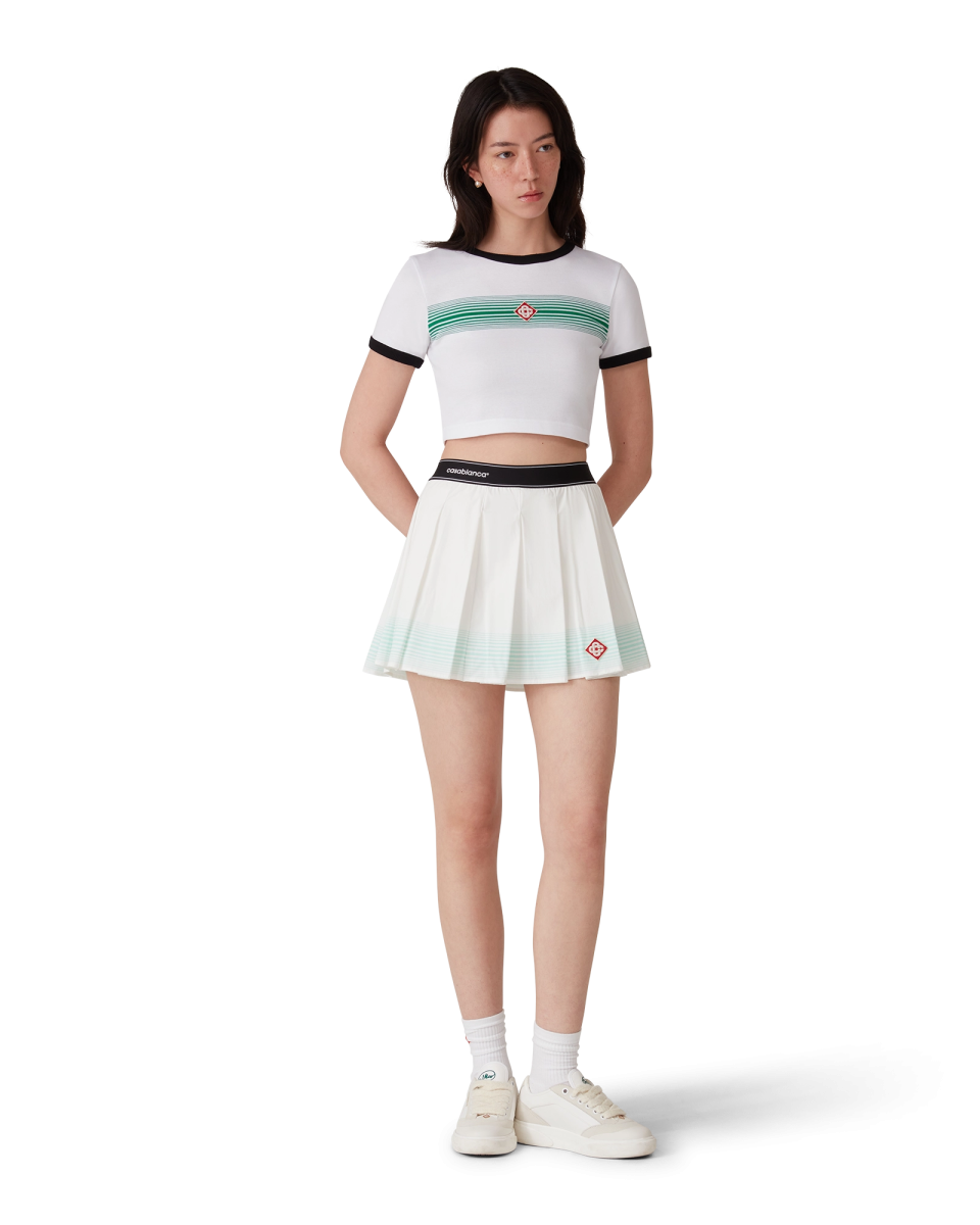 The Astrakhan Skirt is a pleated short style featuring the house’s signature gold-rimmed pearl button detailing. Crafted from an astrakhan fabric with a distinctive surface finishing high on the waist. Intended to be worn with the coordinating suit jacket.