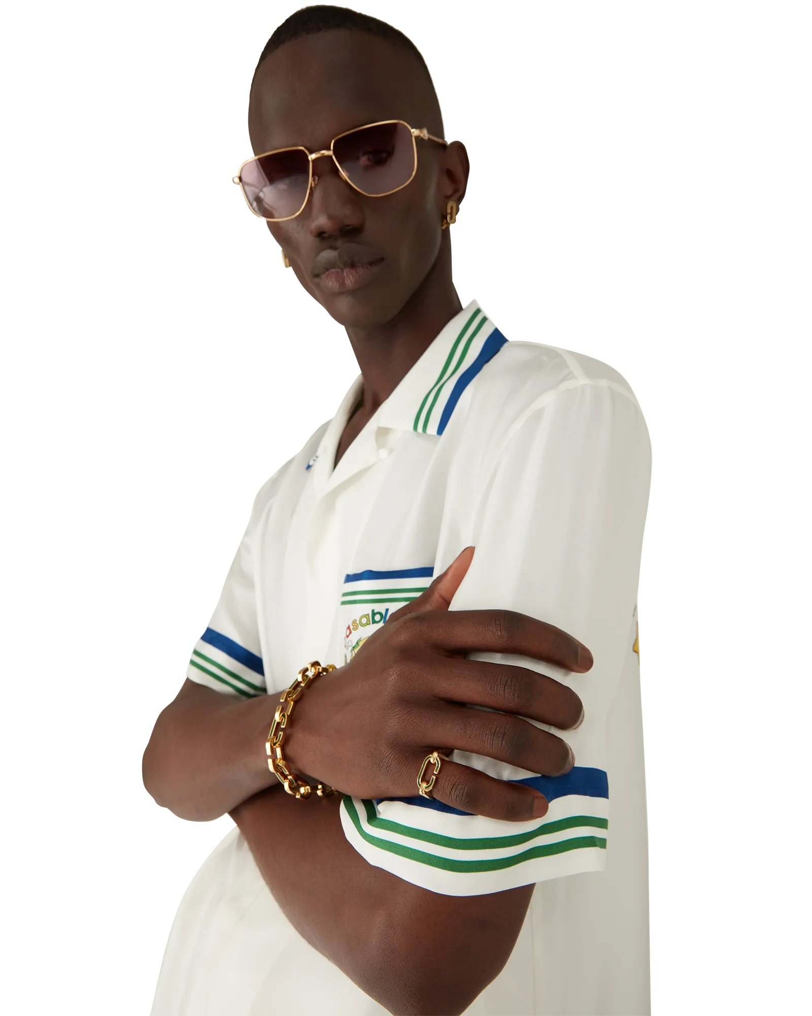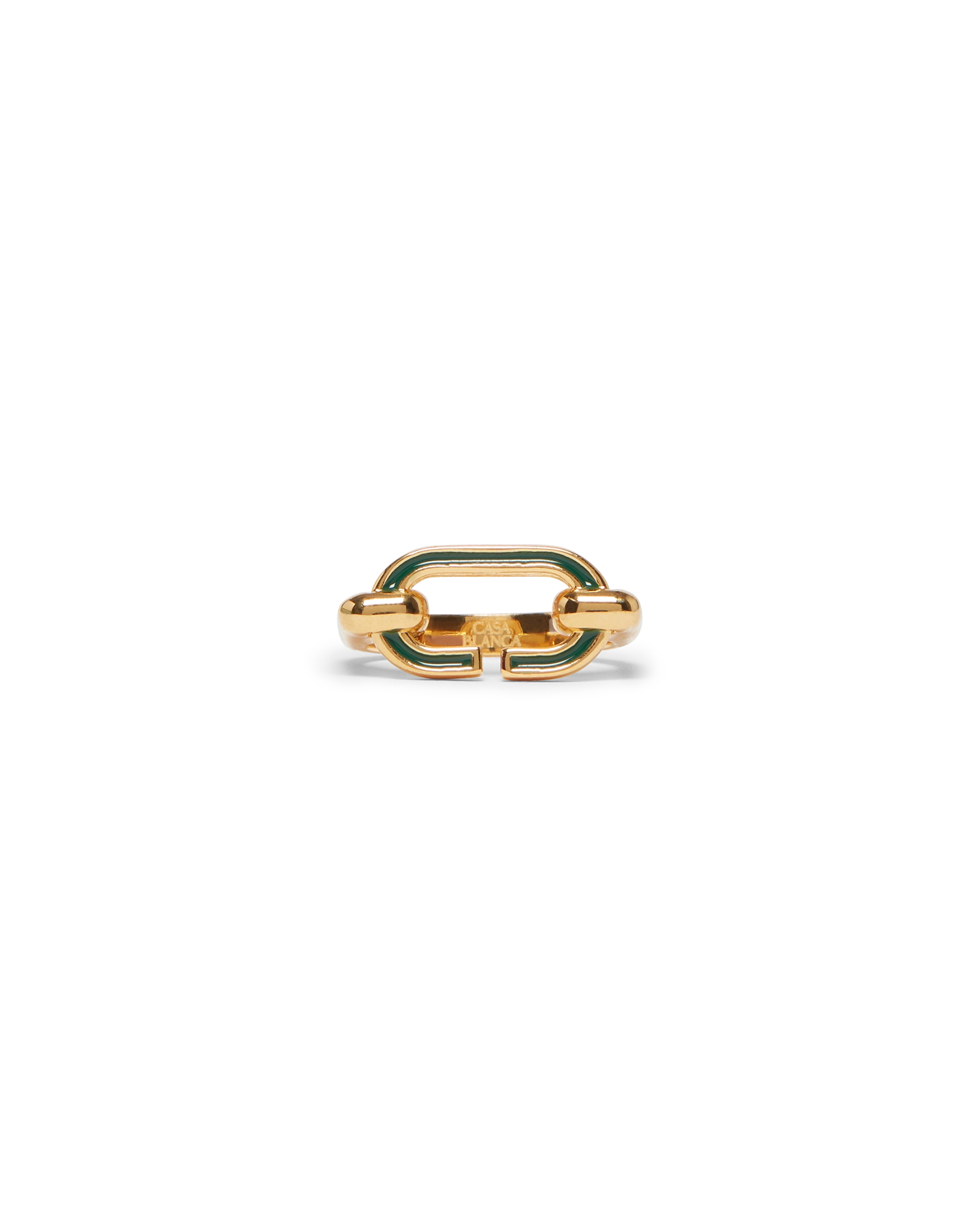 The ‘C’ link ring is a minimalist design crafted from gold-plated brass and enamel. Completed with a green hand-painted enamel ‘C’ and gold-plated band.