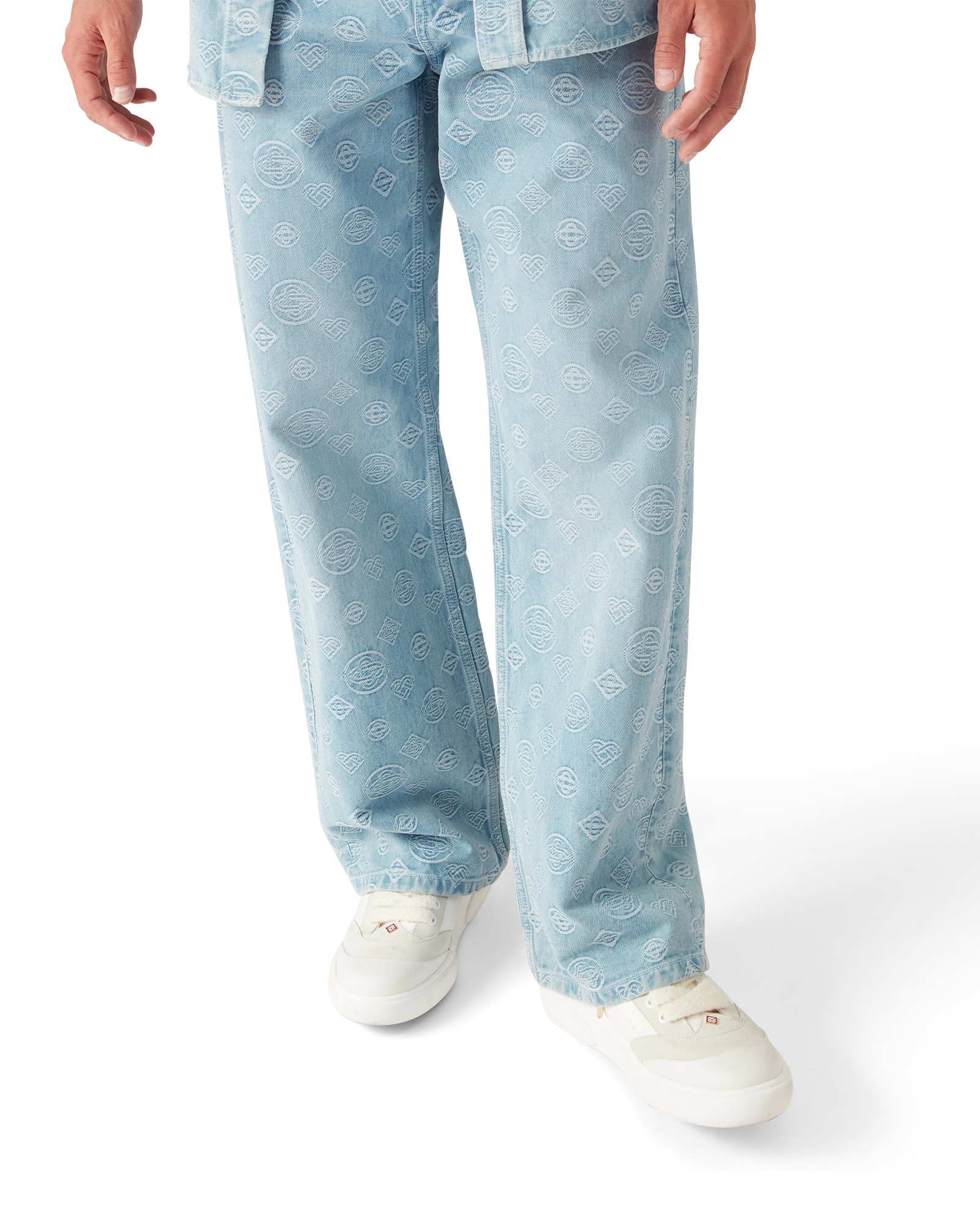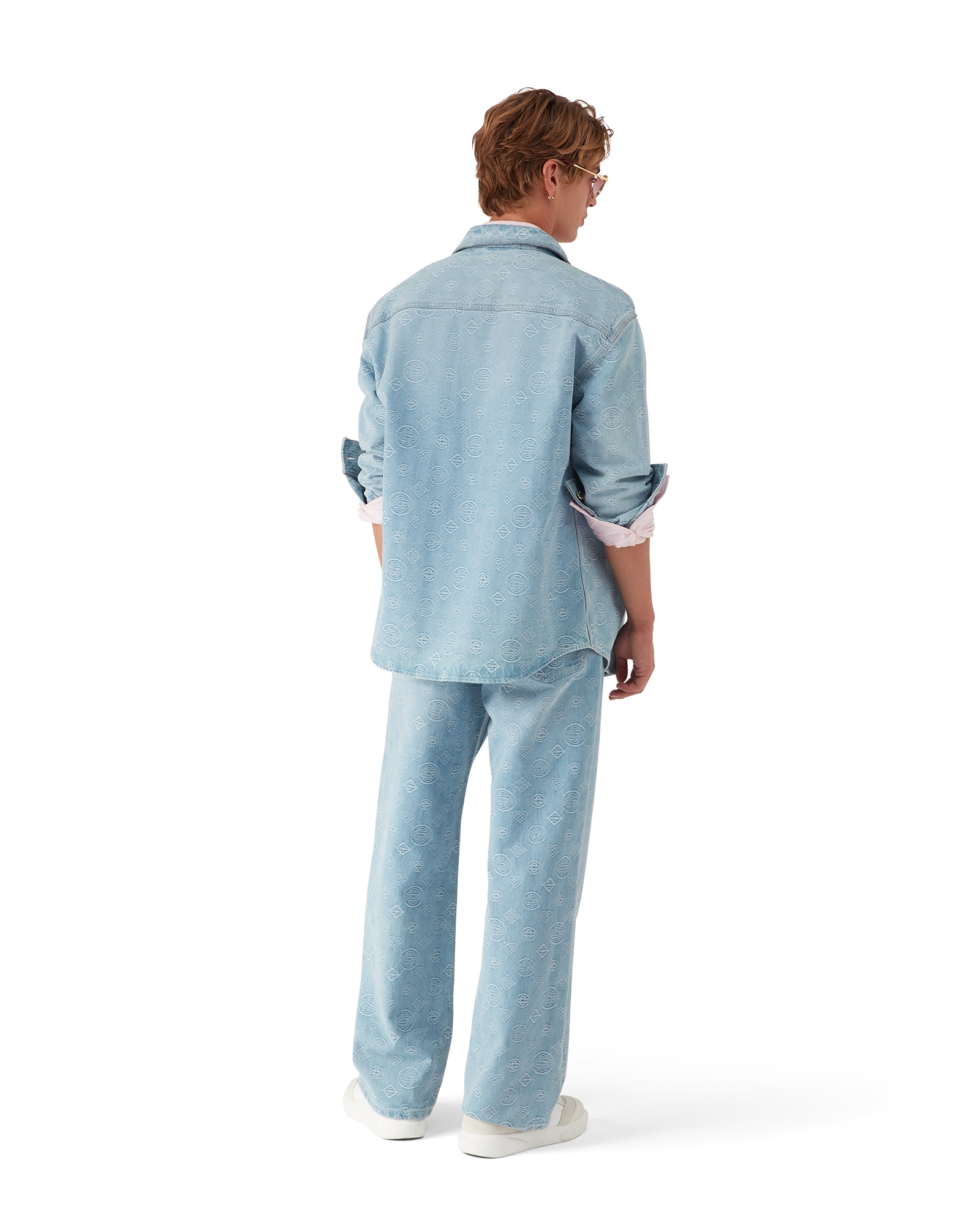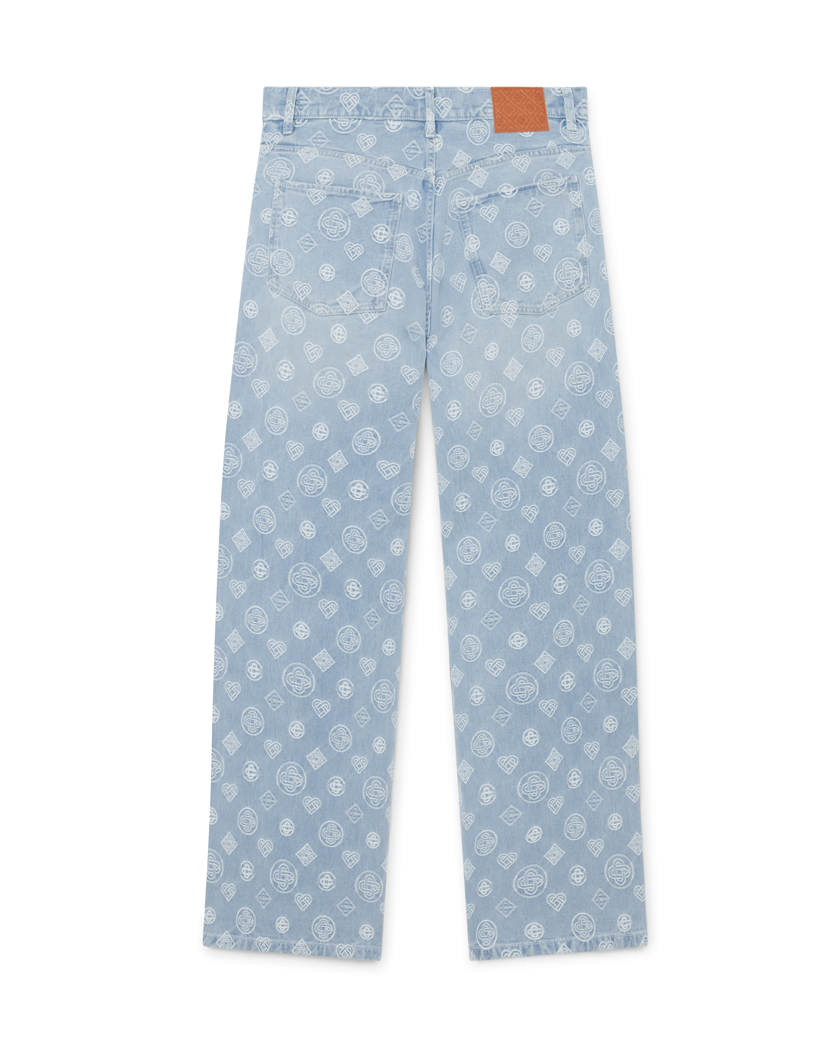 The denim monogram relaxed fit jeans are a straight-leg classic design featuring the house’s Honeydew logo repeat. This repeat differs from our other monograms. as it combines unique shapes to form a cohesive pattern. Completed with belt loops. zip closure. slanted pockets. back patch pockets. and gold-plated hardware.