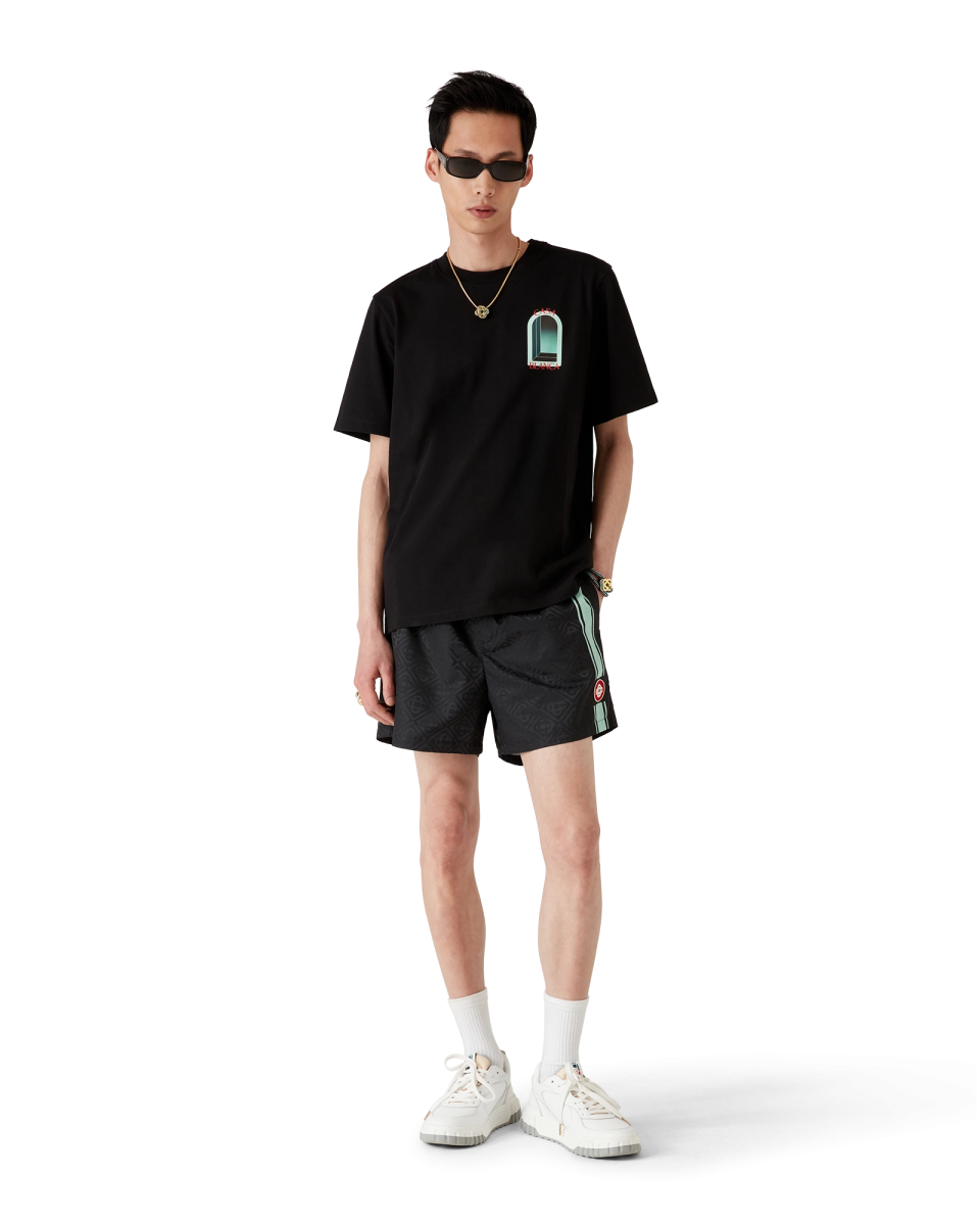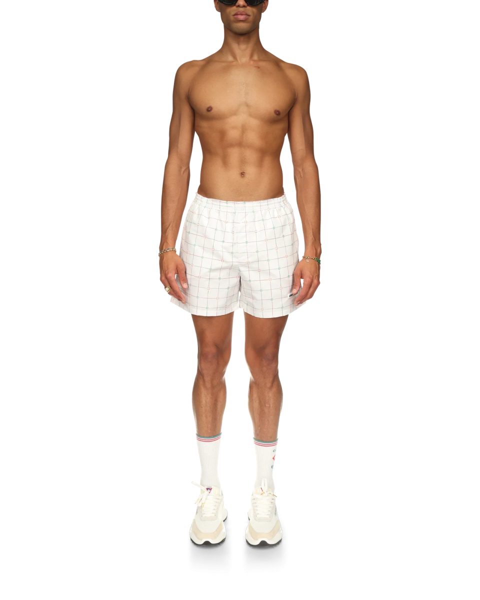 The Gradient swim trunks are a printed design crafted from a gradient monogram printed fabric. The colour palette for this collection is light and idealistic. emphasising ethereal themes core to our brand. Completed with an elasticated waistband with internal drawstring fastening. mesh lining. and in-seam side pockets.