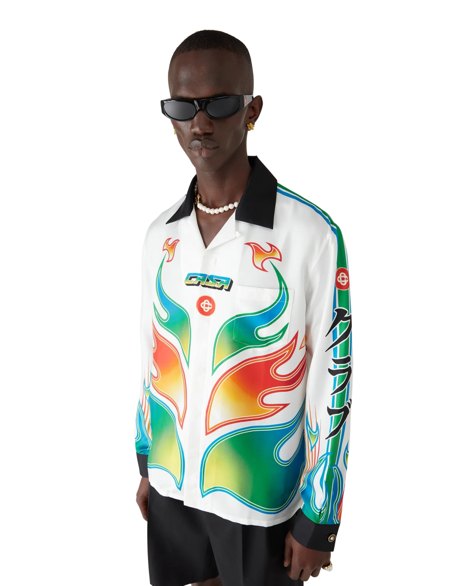 The Le Vase Brise silk shirt is a short-sleeved all-over printed design crafted from a silk satin fabric featuring the house’s seasonal print. inspired by the continued study of the classical beauty and contemporary allure of Ancient Greece. Completed with signature interlocking CC logo corozo buttons. button closure. a Cuban collar. and Greek key-inspired detail on the cuffs. collar and hem.