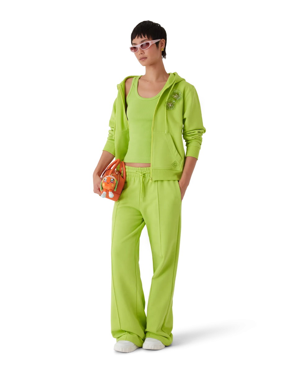The Manga Tennis Ball open hem sweatpants are a sportswear design crafted from organic cotton fabric featuring seasonal artwork exploring the world of Kawaii and Manga. playing with Casablanca’s iconography. using tennis balls as oranges for a fun twist. Completed with an elasticised waistband. gold-plated eyelets. gold-tipped drawstring fastening. pin-tuck seams down the front. in-seam pockets. and a back patch pocket.