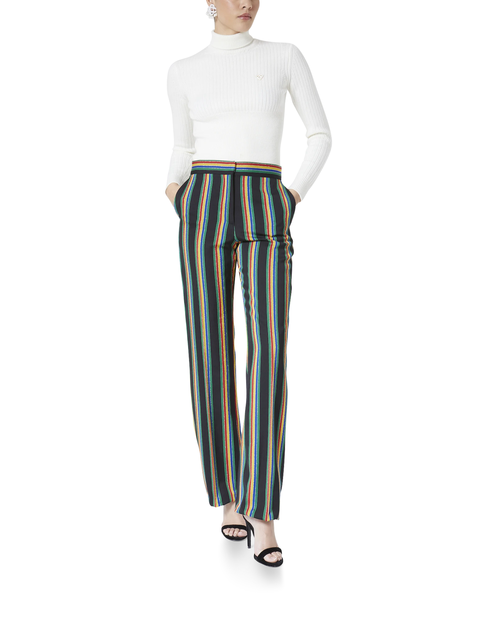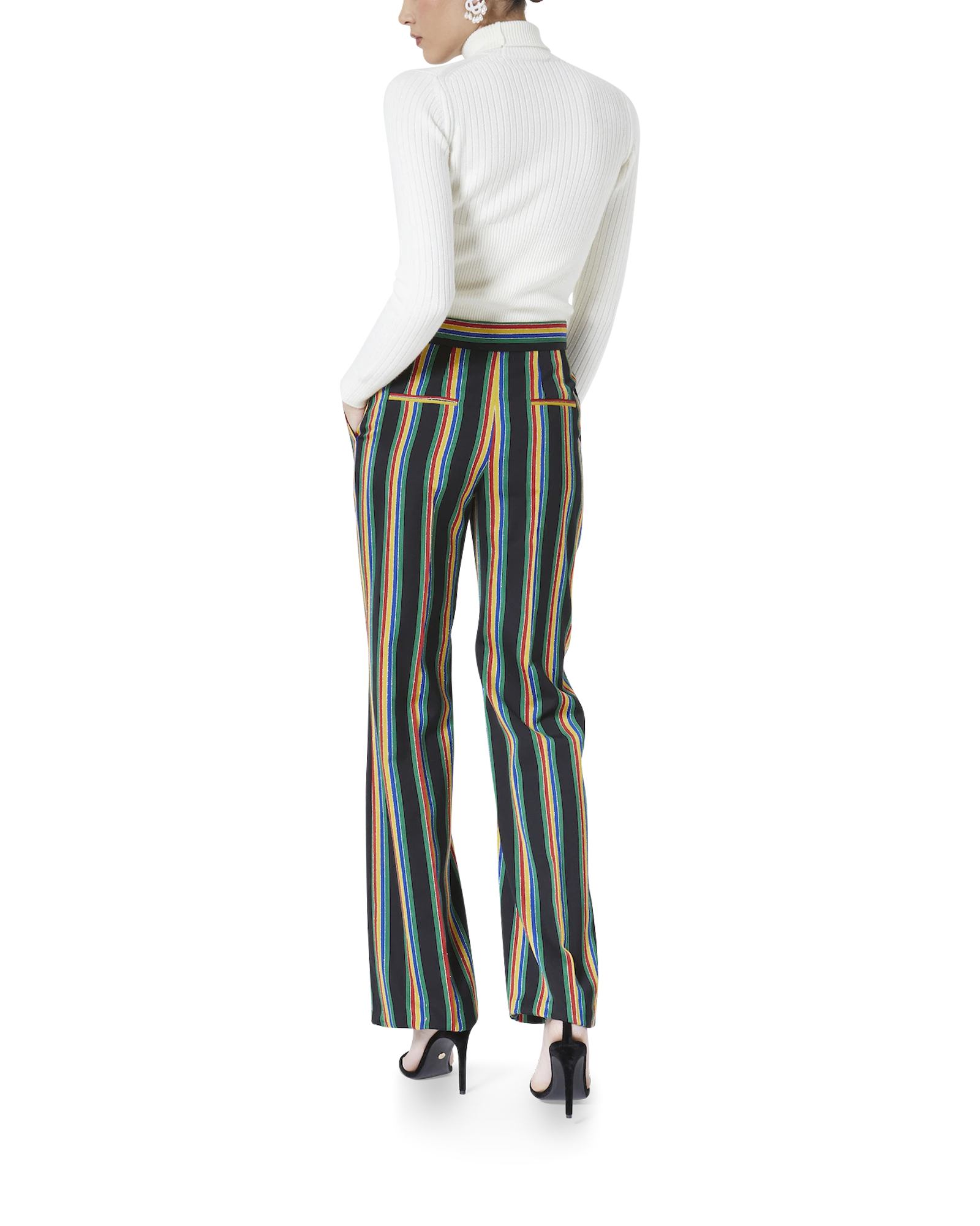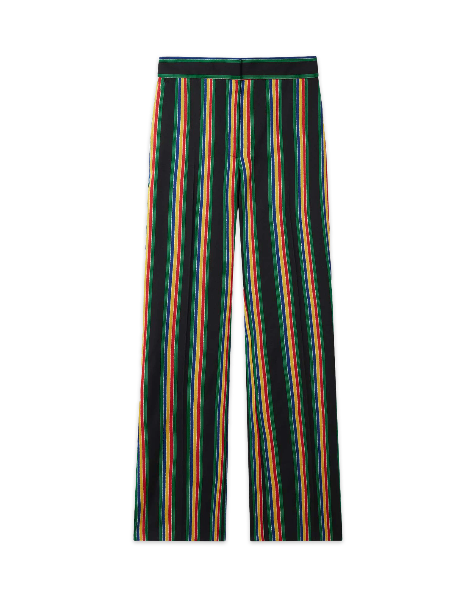 The Medallion Trousers is a classic tailored style in an all-over lurex stripe design. Completed with a front zip closure and side pockets with a straight leg fit. Intended to be worn with its coordinating jacket.