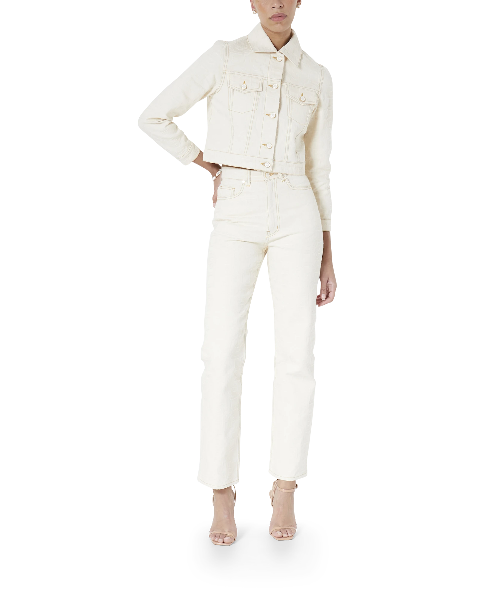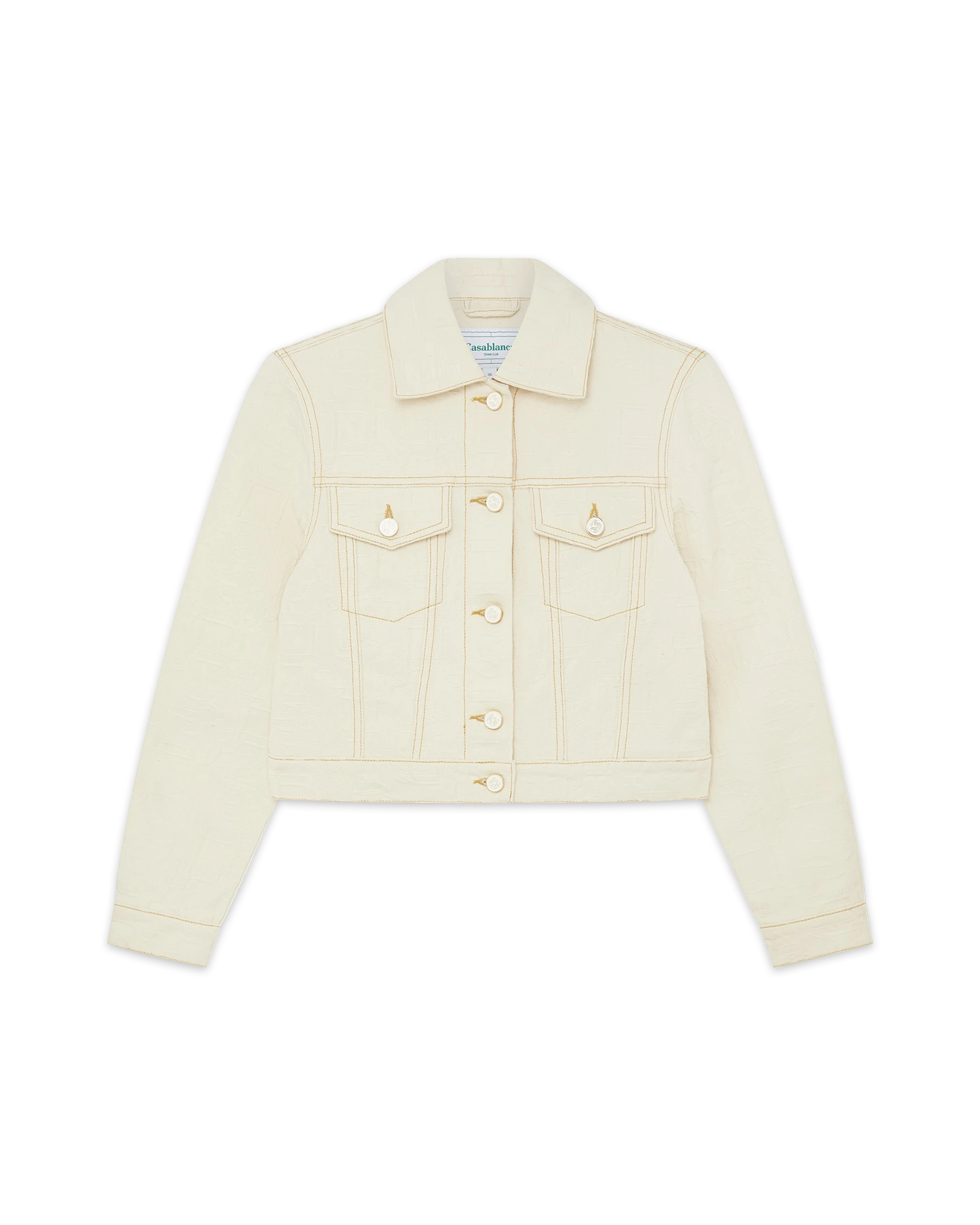 The Monogram jacquard denim jacket is crafted from a cotton fabric in the house’s signature denim for a classic fit. Completed with chest pockets and gold hardware closure. Intended to be worn with its coordinating skirt.