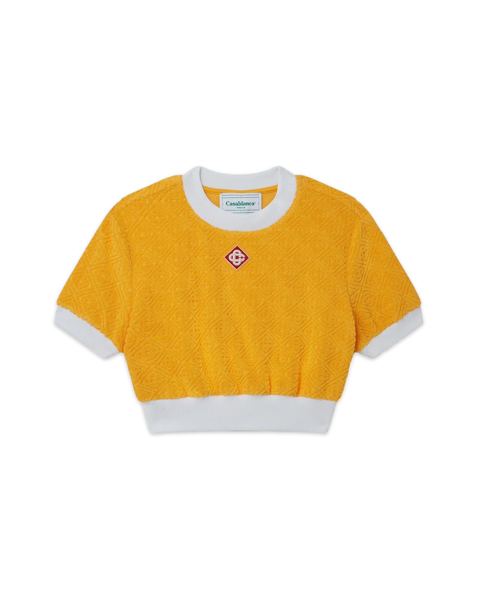 The Monogram Terry Top takes on Casablanca Paris’ sportif aesthetic with our signature diamond logo branding. Crafted from a terry towel fabric with a white rib finish.