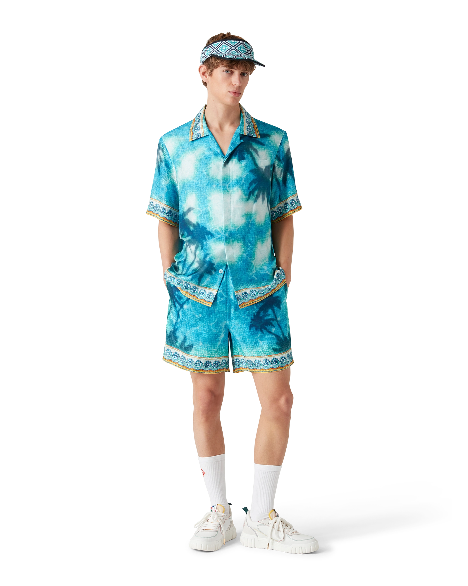 The monogram towelling visor is a printed design crafted from cotton blend fabric. Completed with a peak. an adjustable buckle. and navy trim detail.
