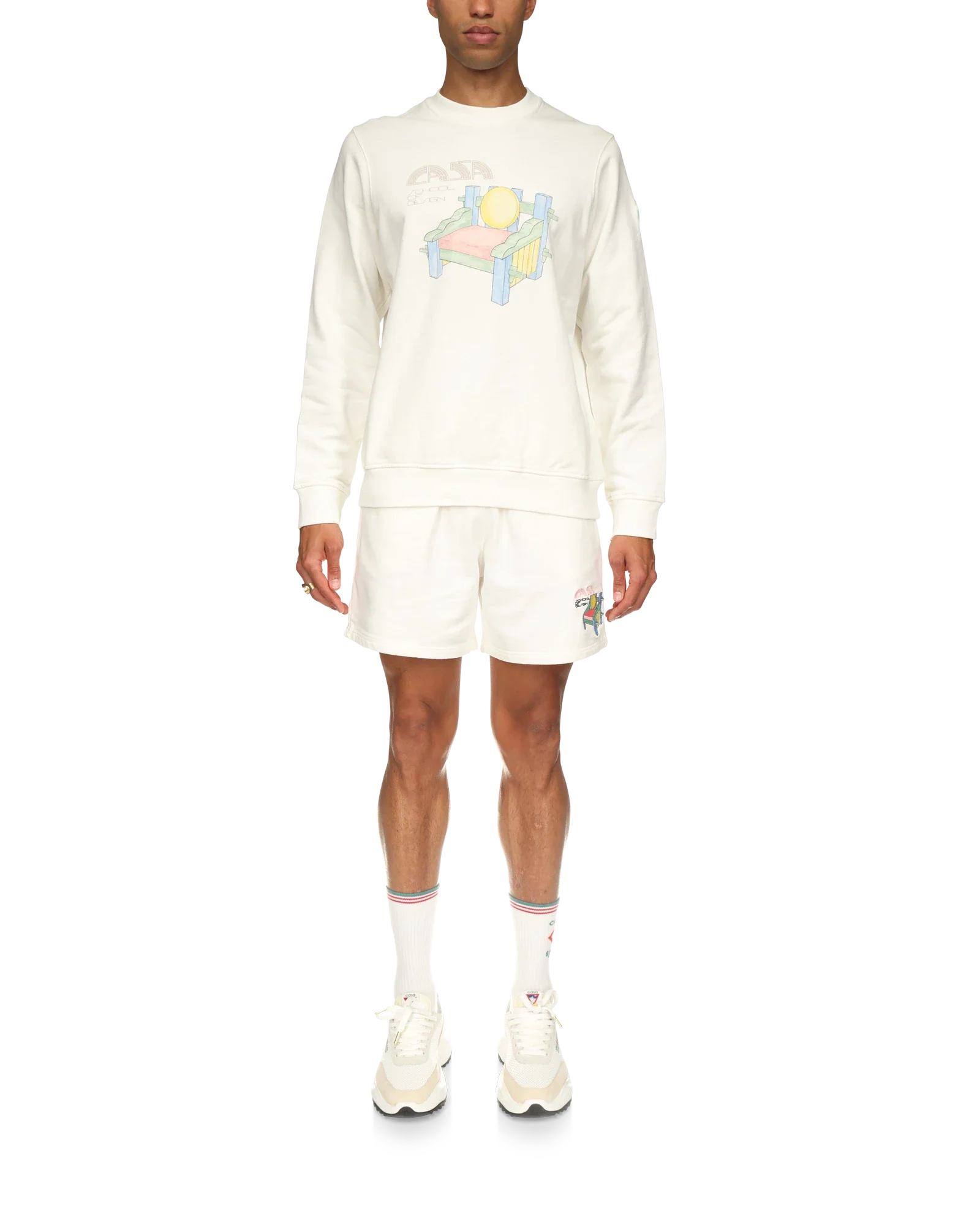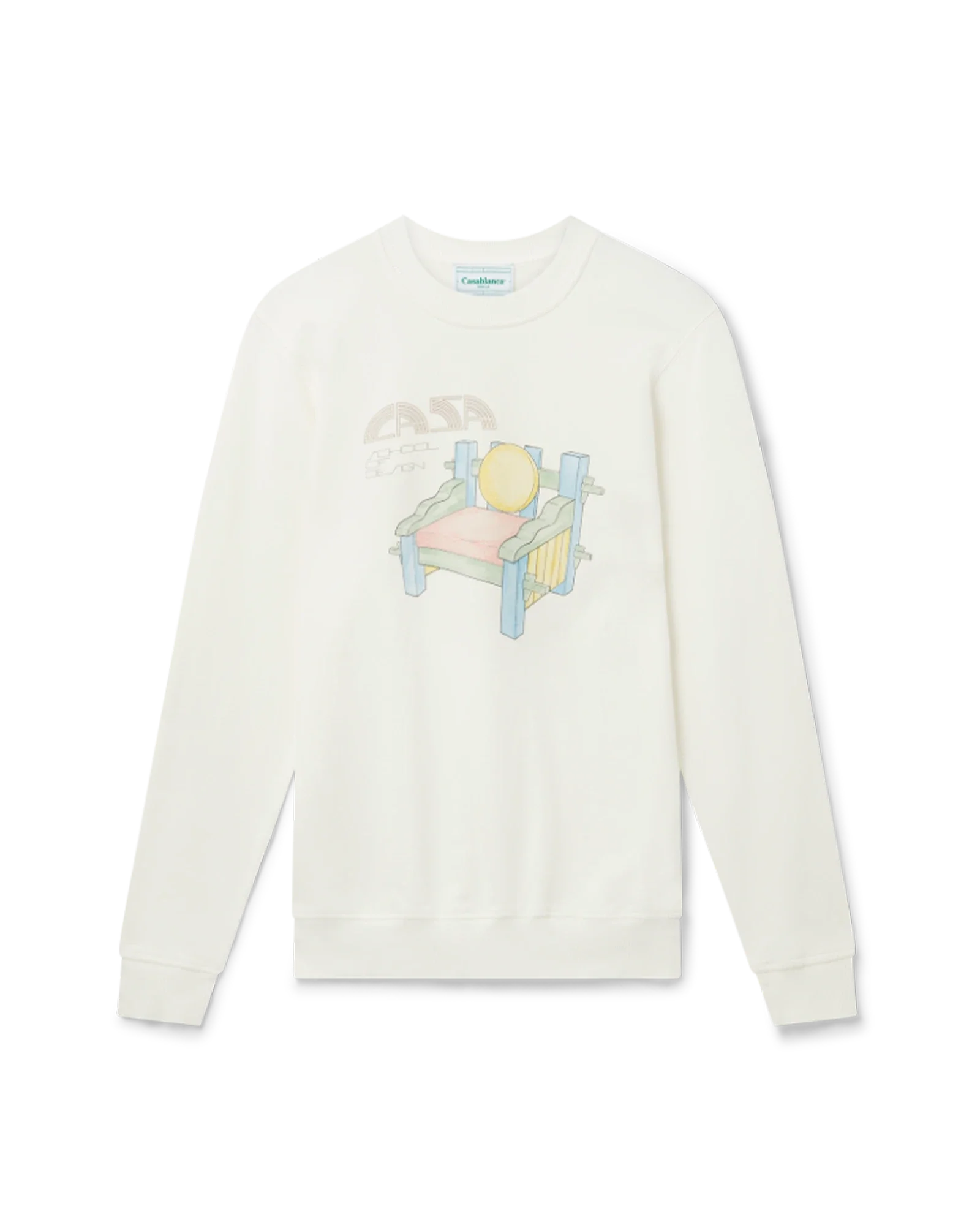 The School of Design screen-printed organic cotton unisex sweatshirt features seasonal artwork. Completed with a classic crewneck. long sleeves and Casablanca Paris branded label. designed for a relaxed fit.
