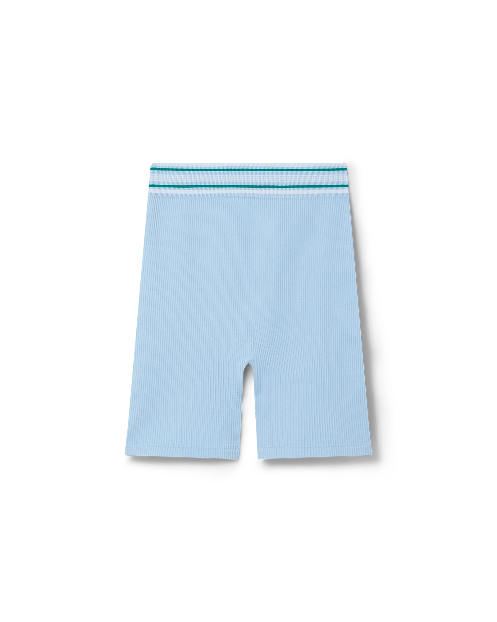 The seamless shorts are a short-style sportswear-inspired design crafted from a seamless rib stretch fabric. Completed with an elasticated waistband featuring the house’s Casablanca logo and stripe detail.