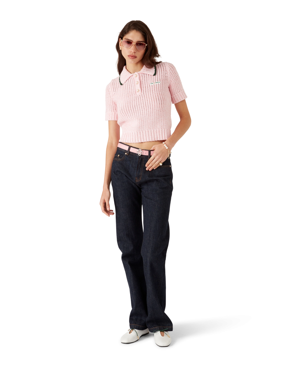 The ski monogram high neck top is a refined après-sport design crafted from merino wool fabric. featuring the house’s distinctive blue and white monogram motif inspired by traditional Japanese winter patterns. Drawing from intricate beauty of frost crystals on temple windows and rhythmic geometry of snow-covered rural fencing.