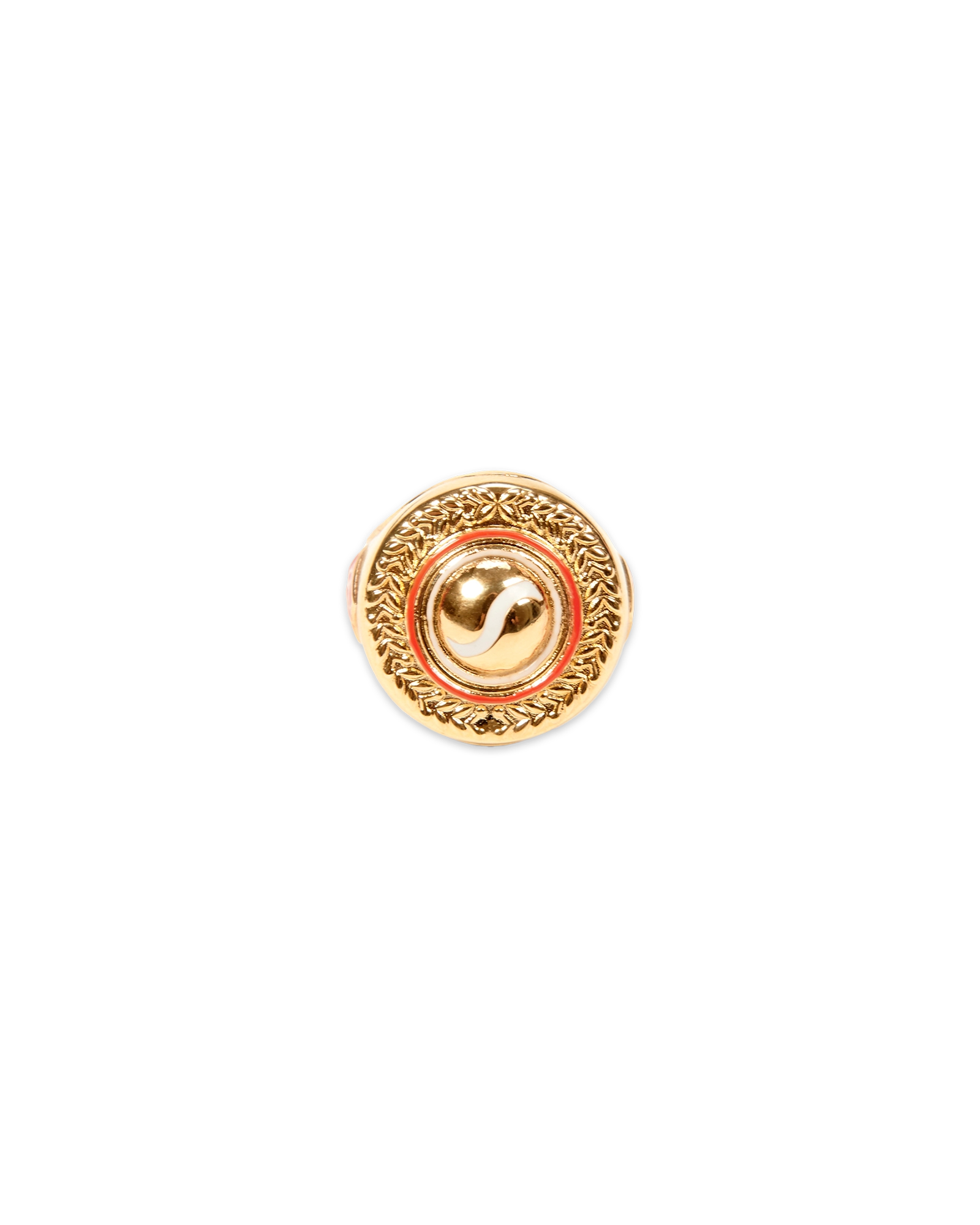 The Sport Medallion ring is crafted from gold-plated brass and enamel and features the house’s signature diamond logo on its shanks.