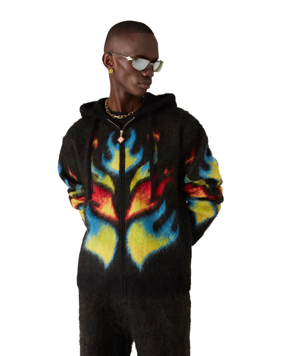 The Unity Is Power silk shorts are crafted from a printed ombre silk monogram fabric featuring the house’s seasonal artwork – unity is power is a strong peaceful message we wanted to spread for this collection. Completed with signature Laurel artwork on the collar. cuffs and hem. button closure. and breast pocket.